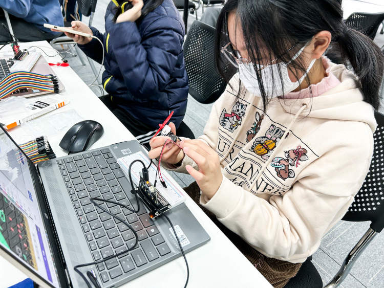 完成小风扇的制作后,老师趁热打铁开始带领青少年完成“进阶”体验:两人一组的物联网运行体验和“智能温控”的体验。“你来发射!”“我来接收!”“竟然可以温度控制!”老师一边讲解大家一边实验,现场气氛十分火热。经过这场活动,青少年化身“物联网工程师”实现了让“万物互联”的奇妙技能体验,既锻炼了青少年的动手能力,又锻炼了大家的逻辑思考能力!