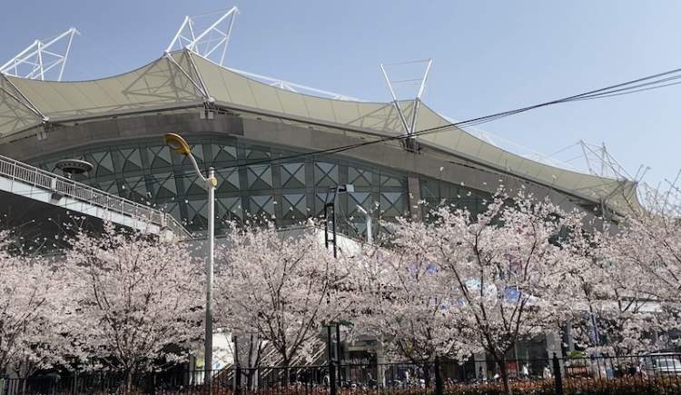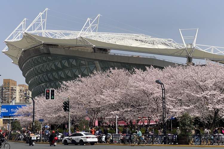 春光明媚的周末,被大片樱花的”花海“围绕着的虹口足球场无疑是人们赏樱打卡的热门景点,这里也可以说是这个季节里上海最美的一座足球场。