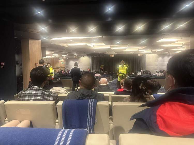 当天下午17:11,秋荻给记者发来信息“所有游客到指定集合地点参加安全演习训练。”