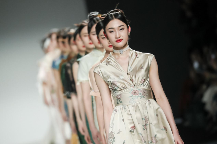 此次大秀别具一格,词牌名“望江南”为表演主题,开场则是一段优美的江南舞蹈《柳》作引,绿柳扶风,春意盎然。在三十分钟的精彩演绎中,模特分别展示了品牌原创设计的创新版型“复古国风婚纱”、“职场女神”系列套装、“国风连衣裙”等多个经典系列,所发布的新一季作品更是以“玉兔”和“月桂”两个设计语境去阐述了当代女性对于“诗意”和“传承”的理解。品牌主理人周立言表示,这些设计灵感正式来自“何须浅碧深红色,自是花中第一流”、“江南无所有,聊赠一枝春”、“霓裳羽衣”、“蟾宫折桂”等诗意人文元素。