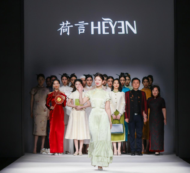 十年大秀中,还有一个设计环节让人印象深刻。不同年龄段的女性身着品牌设计服装,将女性从孩提之年、及笄年华再到婚嫁时刻,直至与爱人相伴一生的过程完整演绎。“荷言HEYEN”品牌主理人希望将这些新国风服饰与当代女性生活方式结合,让每位中国女性都可以拥有蕴含浪漫诗意的一生。