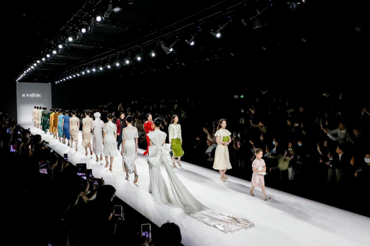 近几年,国风和传统服饰在互联网的年轻群体中频频出圈爆火,引起普通大众的广泛讨论。因此,一贯把“把诗词意蕴穿在身上”为设计理念的“荷言HEYEN”品牌十年大秀人头攒动,十分火爆。