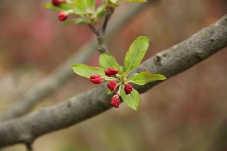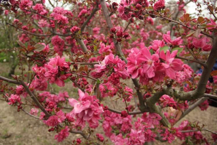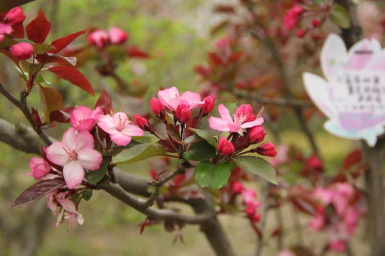 辰山植物园的海棠种植于一号门西湖南侧的春景园内。海棠园占地面积约1.5公顷,游览车道将其分割为海棠和贴梗海棠两大部分,园路南侧的贴梗海棠正值盛花期,与樱花大道盛开的染井吉野遥相呼应,美得令人沉醉。