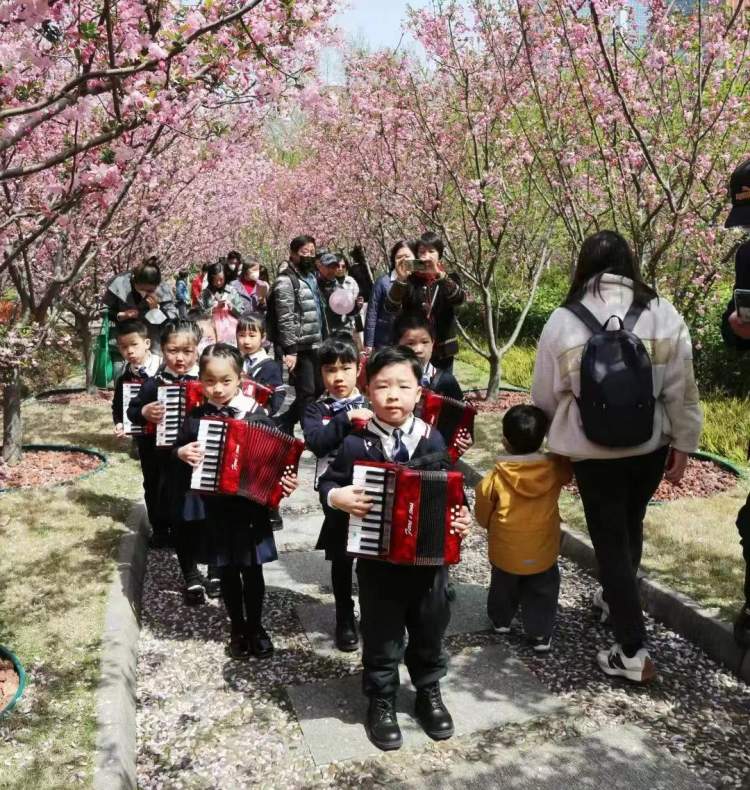 今年积极拓展“公园+”的文化内涵,上海美术学院美术馆的师生设计了《听!春天的声音》互动装置艺术品,把用不同材料制作的200多只小鸟和蝴蝶搭配风铃悬挂在树枝上,表达对春天的向往。