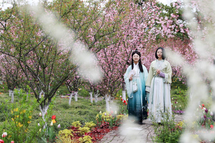 人民公园是市中心难得的集中观赏海棠的地方。公园的海棠文化节也正在进行中。海棠苑里,垂丝海棠、贴梗海棠、西府海棠、北美海棠等7个品系,约1600余株盛开。人民公园的海棠在种植上讲究艺术化的布置,5条蜿蜒的园路让海棠树阵呈现曲线美。