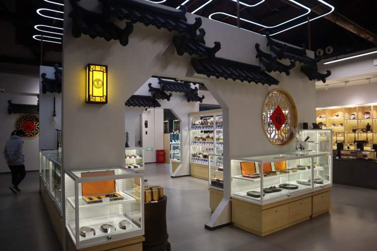 全新的笔墨宫坊面积达四千多平方米,除了可以继续生产,还多了展示非遗文化及珍贵藏品的功能。其中设置了“非遗手作坊”“墨模宝库” “笔墨文博区”“艺术交流中心”“文创空间”“大师工作室”“休闲互动吧”等功能性区域,面向市民开放。