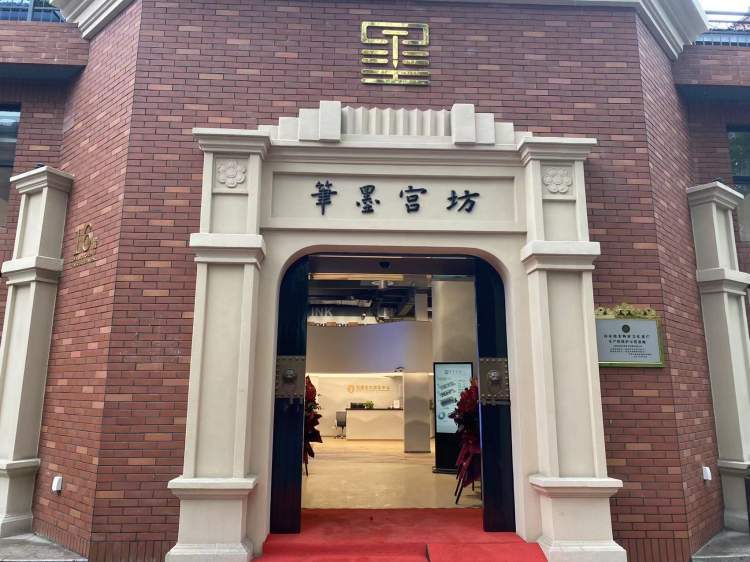 笔墨宫坊是上海周虎臣曹素功笔墨有限公司配合城市改造、厂房动迁后的一次实现“华丽转身”的探索实践,将非遗+文博、非遗+研学、非遗+文创等结合起来,全新打造的一个“国家级非物质文化遗产生产性保护示范基地”。