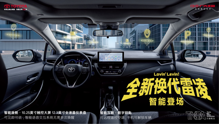 除了更智能的辅助驾驶,全新换代雷凌还为用户提供跃级的智能座舱体验。配备同级最大的12.3英寸全液晶仪表盘、同级领先的10.25英寸触控大屏、可见即可说的T-CHAT智能语音交互。支持CarPlay/HiCar/CarLife全平台手机互联,支持车载微信功能,还有丰富的小程序应用,同时支持OTA系统升级,全面刷新中级车智能座舱体验。