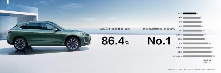 HUAWEI 问界汽车的综合质量得到了广大消费者的一致认可,也获得了多家知名媒体的高度评价。HUAWEI 问界M5车主净推荐值高达86.4%*。在《2022年乘用车新车质量报告》中,HUAWEI 问界在新能源品牌新车质量排行高居榜首*,远超行业平均分值。优异的产品质量证明了HUAWEI 问界在汽车行业的品牌含金量,获得了用户的良好口碑。