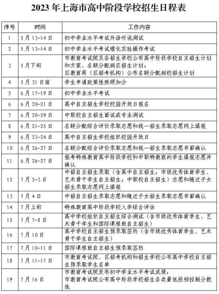 根据《上海市教育委员会关于2023年本市高中阶段学校招生工作的若干意见》(沪教委基〔2023〕5号,以下简称《若干意见》),现就2023年本市高中阶段学校考试招生工作提出如下要求: