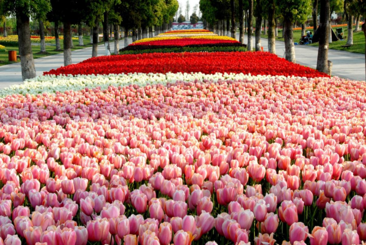 仅今年引进的新品种就有“Beauty of Apeldoorn(阿波罗美女)”、“Delta Storm(三角洲风暴)”、“Dreamer(梦想家)”、“Ice Cream Banana(香蕉冰激凌)”、“Milkshake(奶昔)”、“Qatar(卡塔尔)”“Sugar Crystal(冰糖)”等……园艺师们再一次以鲜花为笔,在林间小路、清水湖畔、鲜花大道、碧野田间谱写春天的乐章,让你不出国门,即可赏尽纯正的荷兰风情。