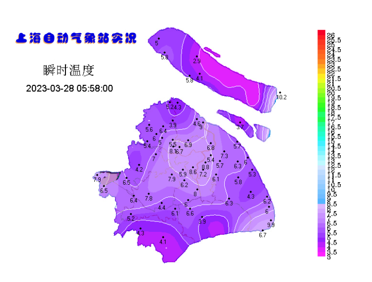 上海今天早晨没有云层锁温,各区只有4℃~6℃,崇明局部仅2℃上下,出门还是冬天般的感觉……
