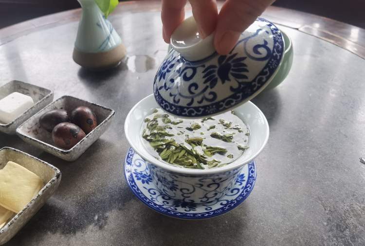 此时,老茶客们还可以注意临摹茶艺师的动作特点:提壶不过肩——动作雅观;出水如蛟龙——水流要急;凤凰三点头——表示欢迎,点三次头,以示敬意;水止如平湖——水量均匀,不满不溢……