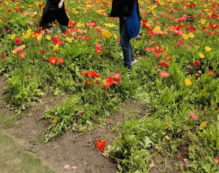 都市森林百花展上周末在共青森林公园开幕,其中一片5000平方米的花海十分漂亮,成为众人打卡拍照的热门景点。然而,开幕的第一个周末,花海部分虞美人等花草即被游客踩踏、踩扁,原因是这些游客要进入花海中拍出更漂亮的照片。