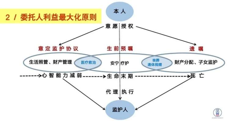这就涉及到我们另一个原则“委托人利益最大化”。老人跟我们签订意定监护协议的时候,还要签订中间的一个东西叫做“生前预嘱”,帮助老人在一开始就界定清楚说我想怎样的医疗救治、我想我的临终时刻如何安排,这样作为监护方,在未来就能够按图索骥的帮助老人提供服务。