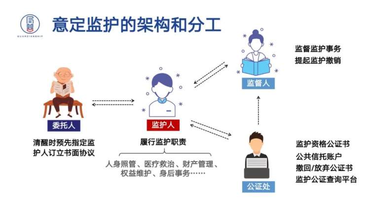 监护是一揽子的协议,分成代理期和监护期,一开始代理期的时候,机构只是做辅佐决策或帮助执行。如果老人突然昏迷或者丧失行为能力,机构则自动履行监护责任。