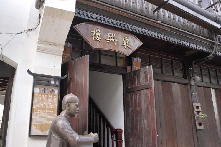 都说一座东兴楼,半部庄行史。如今每周六下午东兴楼里的清音演唱会,则用另一种形式书写着一部新的历史。老年人个个都爱带个养生杯,来这儿听一下午的免费“清音”。