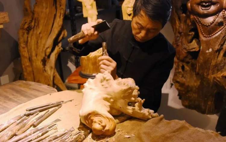 大师说:我在雕刻的过程中,会交替运用传统工具和现代机械工具。打胚时用现代工具,细雕时用传统工具,不同工具的相互配合,让我的根雕制作效率大大提升。