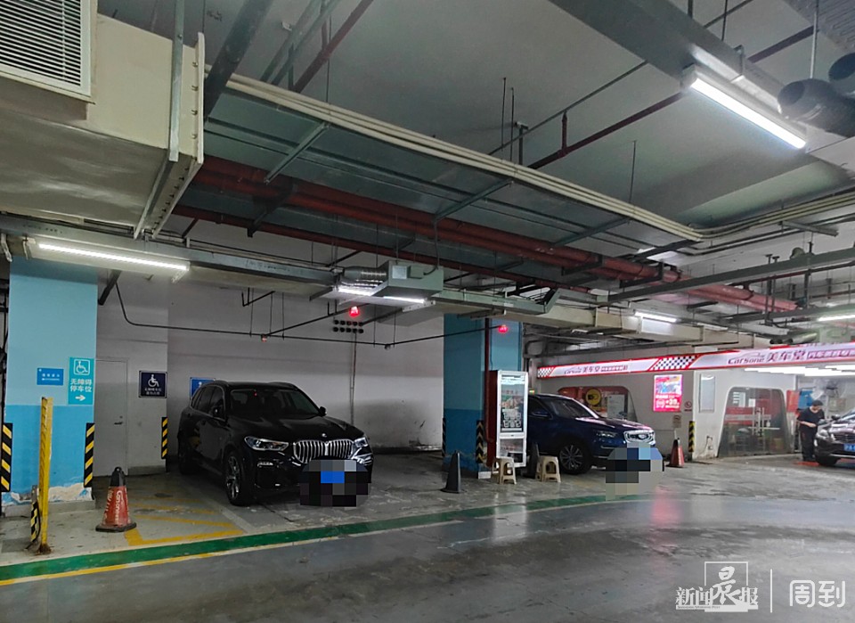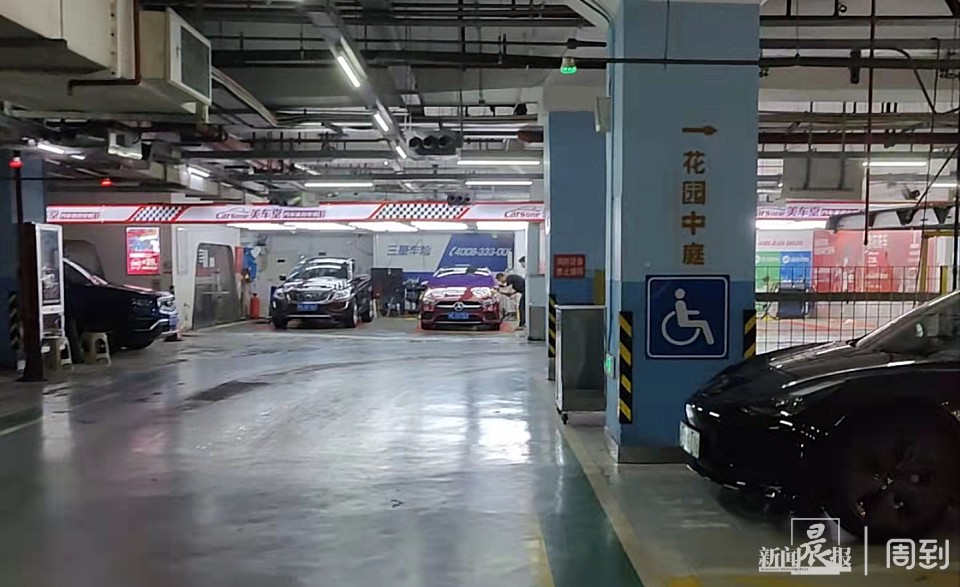 对于“占车位”的情况,记者通过走访发现,除了环球港,静安晶品最靠近该商场“美车堂”的三个普通车位,也均被三角桩占用。车库保安告诉记者,这几个车位是“美车堂”私自占的,方便洗完车后晾干车辆。