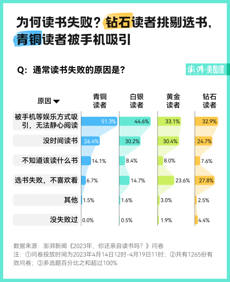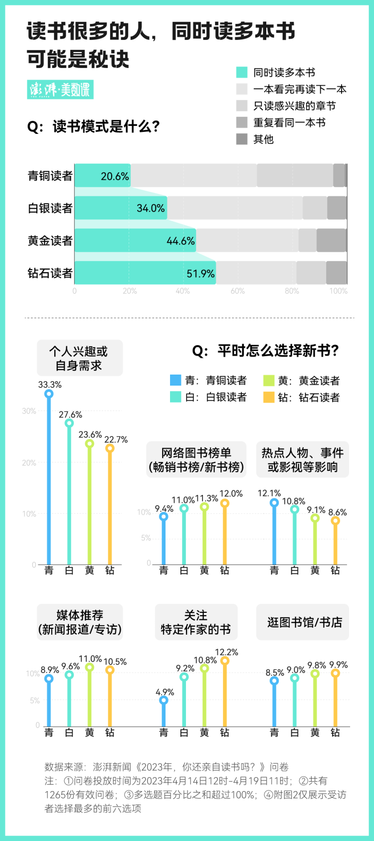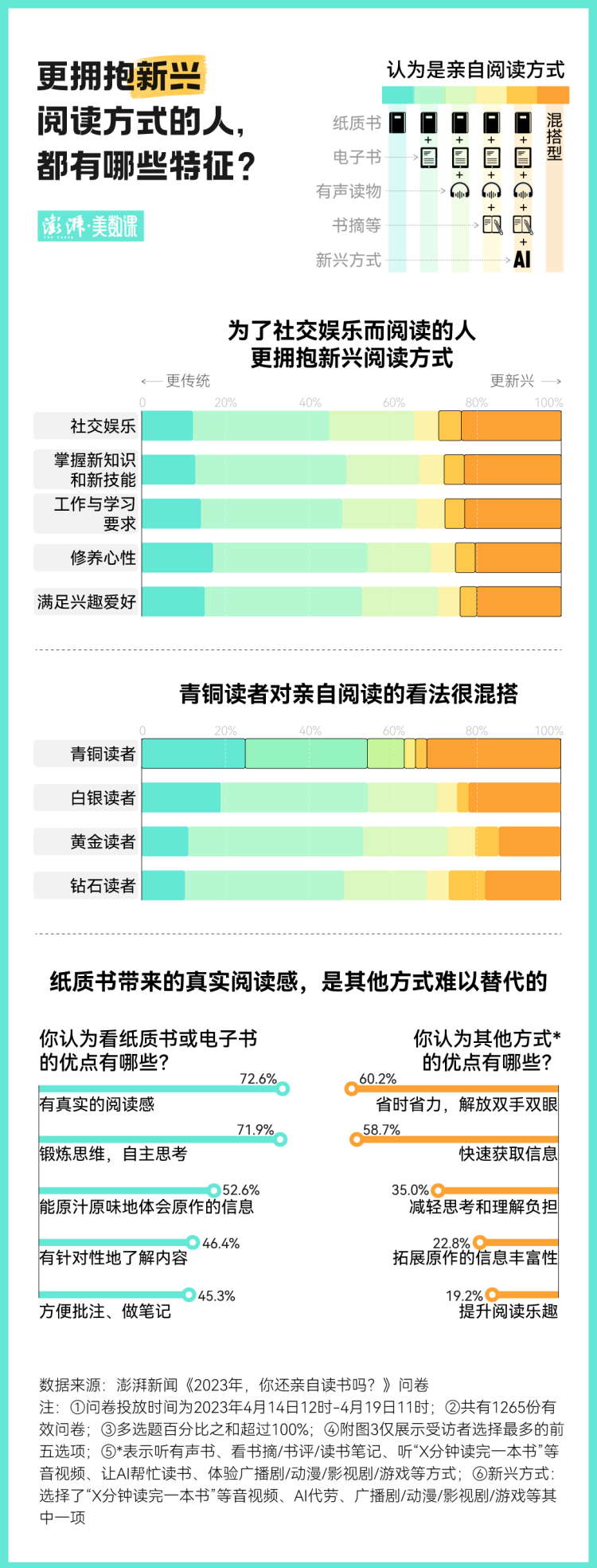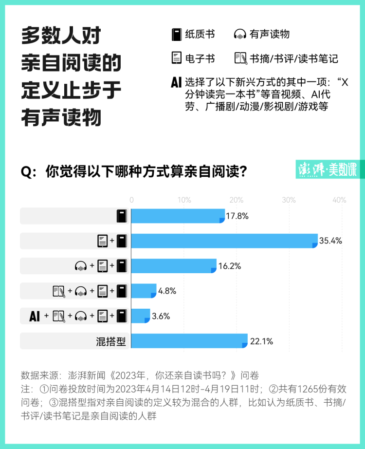 为了一窥新时代的读书生态,澎湃新闻发起名为《2023年,你还亲自读书吗?》的问卷,共收到1265份有效问卷。