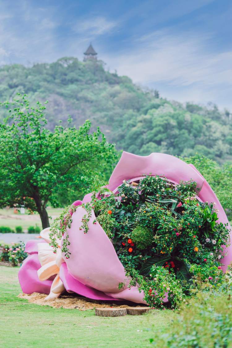 最后是位于空中月季园的云雾花谷展区,表达“让整片花海见证我们的海誓山盟”的爱的结局。2.5万余平方米流畅的花带沿地形此起彼伏,展示了月季种或品种500余个。一大片壮观的花海中,布置打卡点“海誓山盟”,以及“我们牵手啦”“我还缺对象”等俏皮背景牌,让爱与欢乐相随。