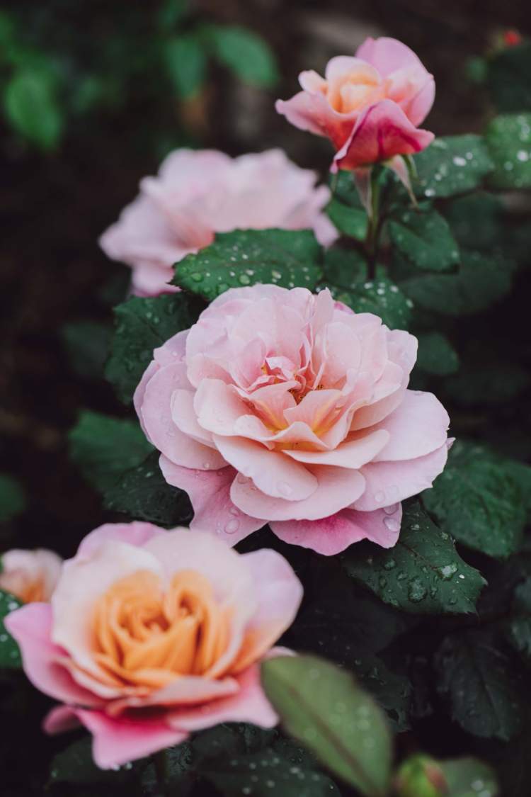 第一种月季名为“遥远的鼓声”,颜色非常特别,呈棕褐色和淡紫色的混合色。一天时间里,在未开放阶段,它的花瓣边缘为淡紫色和粉色的混合色,近花心颜色是土黄色,然后渐渐呈现古铜色,外面花瓣为淡紫色,随着花盛开变成淡粉色,被誉为“颜色的交响乐”,有迷人的茴香和没药香气。