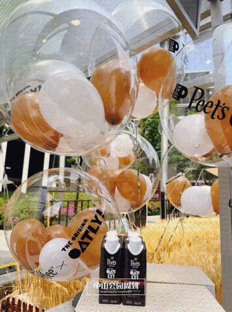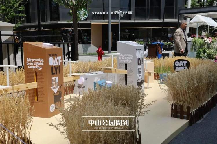 不仅是植物奶本身的制作过程秉持着可持续理念, OATLY还用咖啡渣、可回收塑料制作了雨衣等实用物品,助力环保消费升级。现场更是布置了麦浪露营场景,将自然舒心的麦田带到城市中心,既是燕麦奶可持续理念的传播,也是创新消费场景的一次生动呈现。