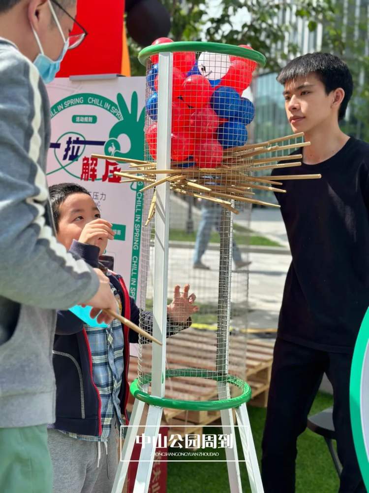 在乒乓球台上来一场律动乒乓赛,青春洋溢的年轻人和头发花白的“老球友”现场对打;为了获取奖品,积极动用智慧和动手能力的小朋友与几根竹签“杠上了”;在空地区域来回抛个橄榄球、扔飞盘,人与人之间的和谐互动在这片运动社交场景中愈发生动。