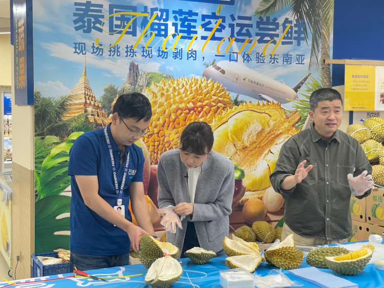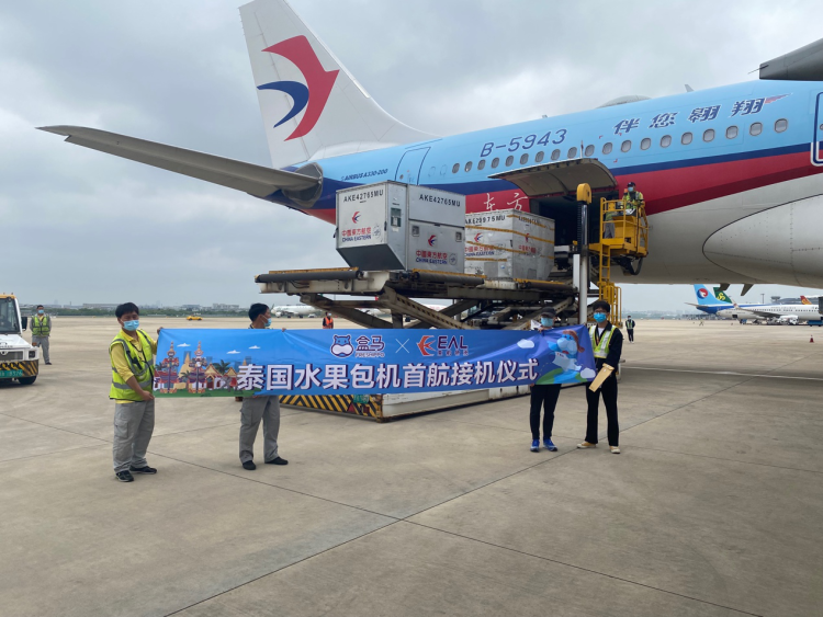 图/4月,盒马与东航物流联手将泰国水果包机直送国内