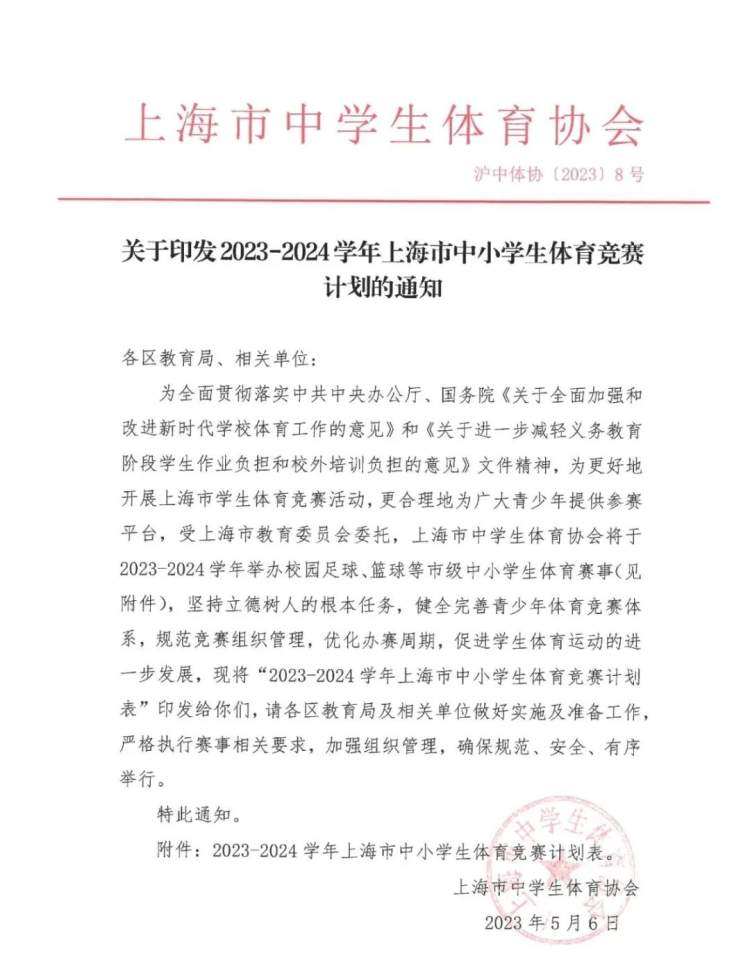 2023-2024学年上海市中小学生体育竞赛计划表