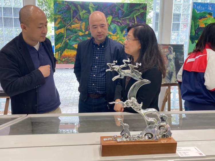 上海美术学院党委副书记、纪委书记宋国栓老师认为,展卖会让艺术可把玩、可欣赏、可想象,是让艺术走进生活的很好的尝试。在当下,艺术不是束之高阁,不是孤芳自赏的,它应该走进火热的生活,也让我们同学的创作也要扎根于生活,扎根于人民。
