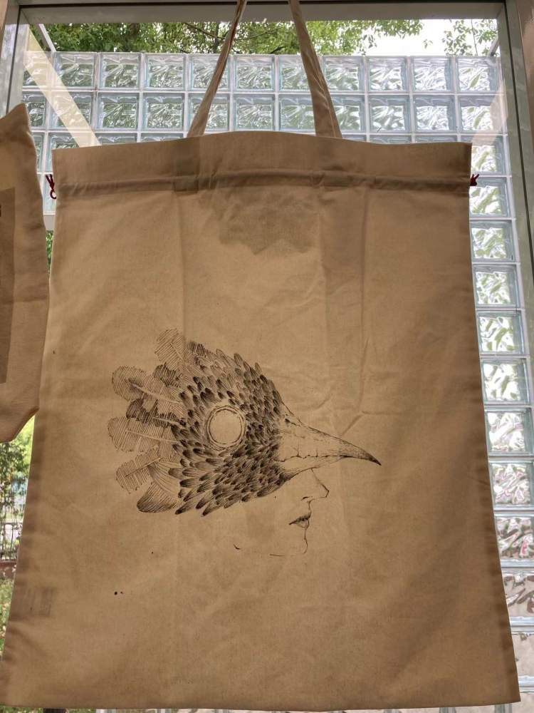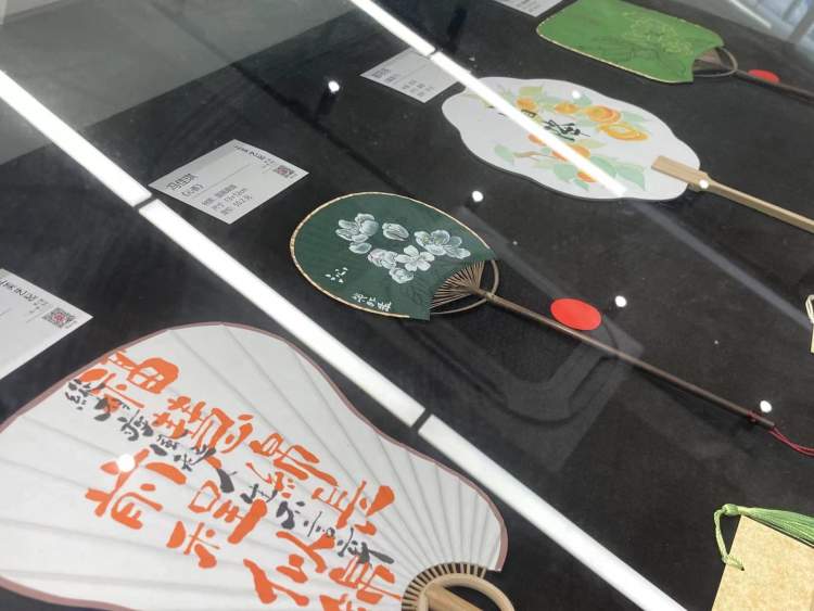 周到君在展卖会现场看到,作品中包括国画、油画、版画、雕塑和文创,价格便宜到不能想像,标价范围大多在一两百元至一两千元,更有不少别致的原创扇画,标价只有50多元,一个原创手绘的帆布袋只卖80元,几乎是外界文创复制品的价格。