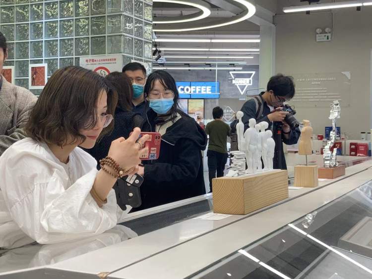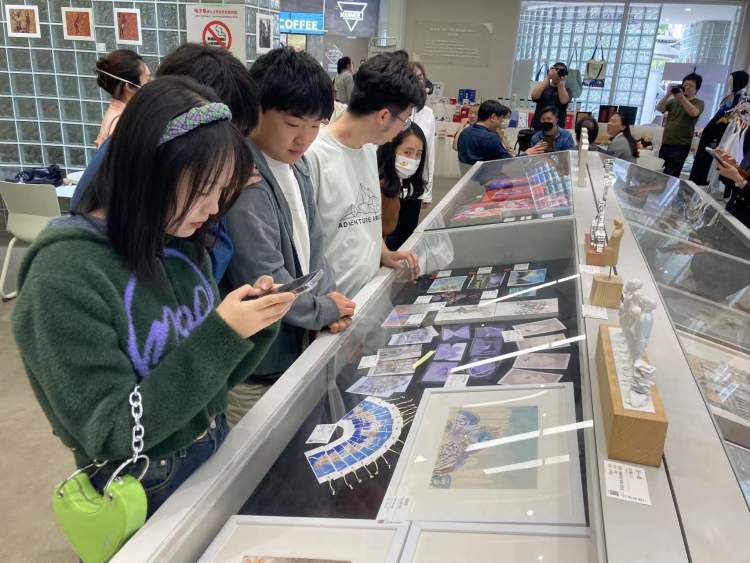 负责组织本次展卖会的上海美术学院本科生第二党支部书记田佳佳老师介绍说,这次展卖活动原本是三年前一位同学的创业创新项目,当时就是想将学生的作品从教室推向社会。本次展卖会上呈现了学生们的原创作品,为了这个活动,学生们自己策展、选品、展陈,付出了心血,而社会各界对展卖会也十分关注。展卖会除了线下展示,还开了“上美艺起Artrise”的线上微店。我们美院愿成为青年学子们展现自我艺术风采的广阔舞台,也希望社会各界可以给青年艺术家们更多的包容与欣赏,支持与鼓励。
