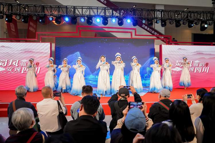 开幕的第一天,在一楼中庭南区,还上演了丰富多彩的演出,包括来自陕西的华清宫景区唐宫乐舞,来自四川的“蜀风雅韵,安逸四川”系列表演,包括歌舞类、川剧变脸,以及茶艺表演等。随着欢快、激扬的音乐,为市民展开了一幅美好生活的画卷。未来4天,还将有更多的演出在这里上演。除此之外,现场还有很多“可吃、可玩”的展台,比如,在专题展区的红双喜展台,马利画材在品牌日现场发布了“中国色,选马利”,凤凰自行车带来了电动自行车;在乡村振兴板块,可以看到来自全国26个省市,多达93种的各地特色产物,从东北到江南,从山地到平原,从高原草原到江湖河海,能想到的风味特产、特色小吃应有尽有。