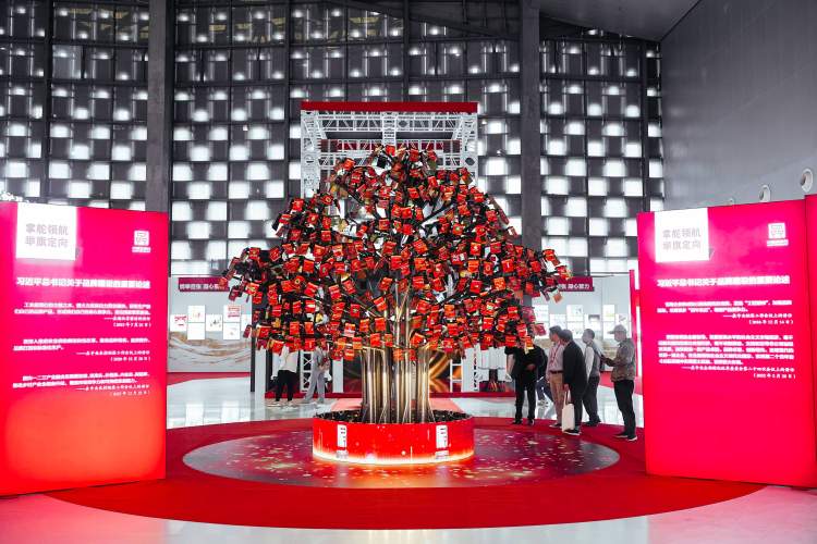 今年中国品牌博览会设置了主题展区、综合展区、地方展区和专题展区。主题展区内特设“创新100+”板块,展示来自37个省区市和34家央企的140件展品。今年品牌日活动的“镇馆之宝”——中国空间组合站模型就位于这里,它是一张耀眼的国家名片,中国空间站的建成也标志着历经30年岁月的中国载人航天三步走战略正式完成。随着“镇馆之宝”逐渐展开创新100+的展项,既有实现了5个国内首创的70MPa(读音:70兆帕)移动加氢站,也有凝聚了中国核电人30多年坚守创新的“华龙一号”,还有能“轻松应对”高原高寒地区隧道施工的“雪域先锋号”盾构机模型等,它们代表着中国品牌突破创新、稳健发展的头部力量。