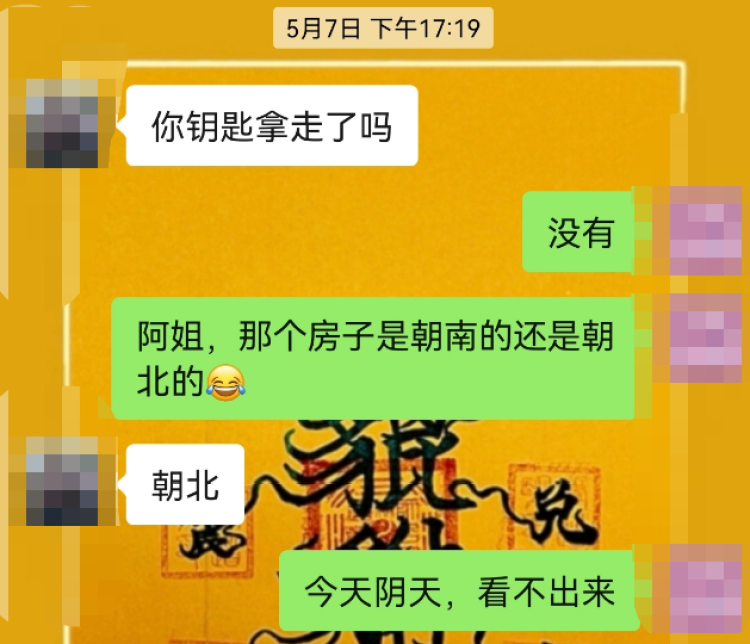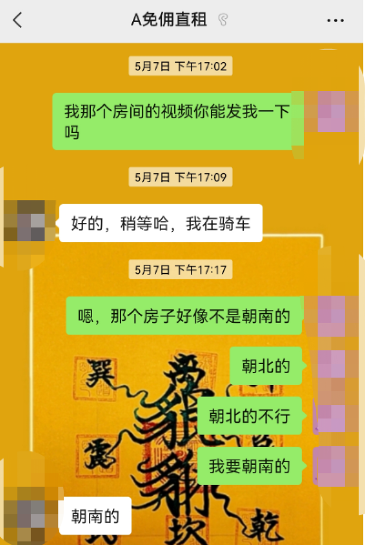 路程中,茅女士还加上了房东的微信,和对方提了一下要修的马桶等小细节,这时茅女士才突然想起来,和房东问了一句房间的朝向,对方告诉茅女士,房间朝北。