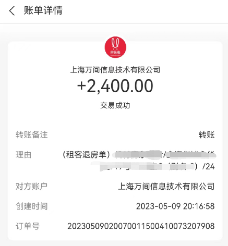 在收到2400元租金后,巴乐兔平台便告诉茅女士,剩下的钱退不了。即便拨打了12345市民热线投诉反映,茅女士也并未收到相关部门的回复。