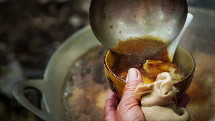 煮沸的咖啡里放入红糖和核桃碎,味道香甜醇厚。咖啡煮出的溏心鸡蛋,入口细嫩混合着咖啡的香气,丰富的口感让人回味不已。
