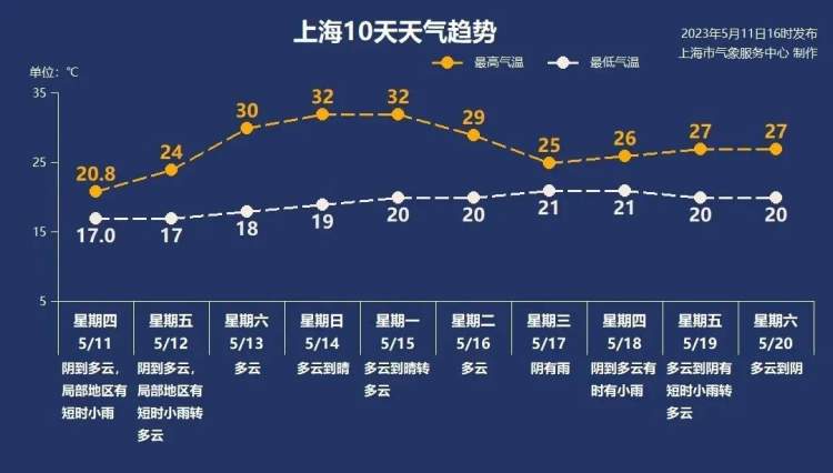 随着最高气温的突飞猛进和最低气温的稳扎稳打,申城将开启向夏天冲刺的列车。
