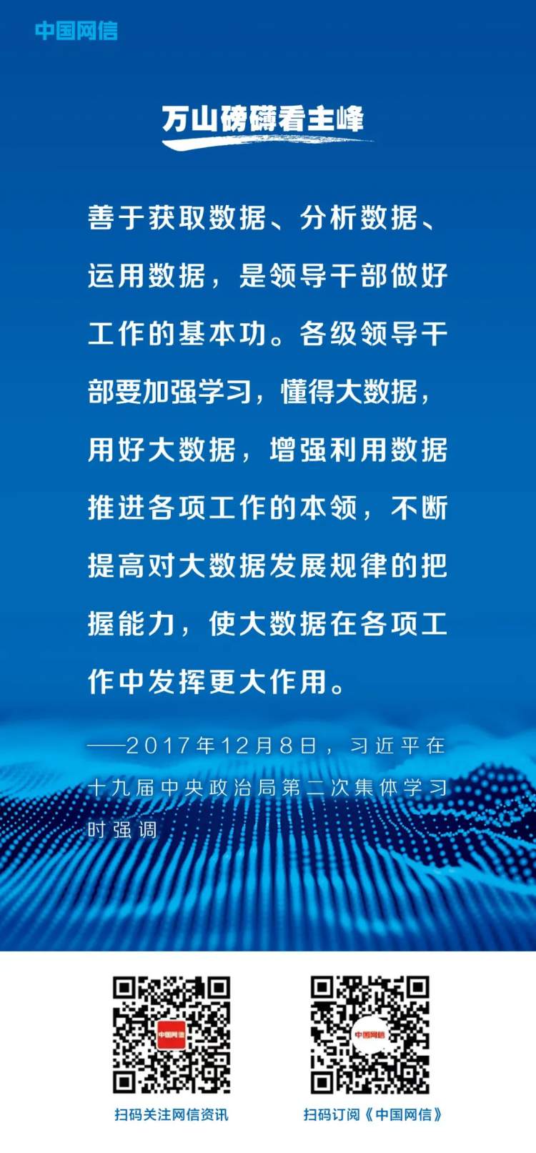 习近平论大数据 2023-5-26 来源:中国网信杂志 2023中国国际大数据产业博览会将于5月26日至28日在贵阳召开,本届大会以“数实相融 算启未来”为主题。《中国网信》杂志摘取习近平总书记关于大数据发展的重要论述,与你一起回顾学习。 来源:“中国网信杂志”微信公众号 投稿:zhongguowangxin@vip.sina.com 赞一个 (0)