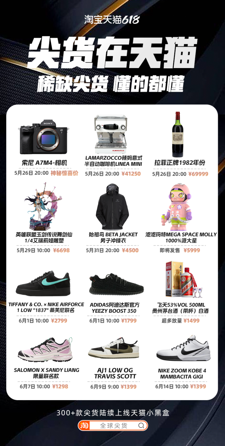 据悉,这12款尖货将从5月26日开始陆续发售,消费者可通过淘宝搜索“全球尖货”或进入天猫小黑盒频道,参与抽签、抢购。