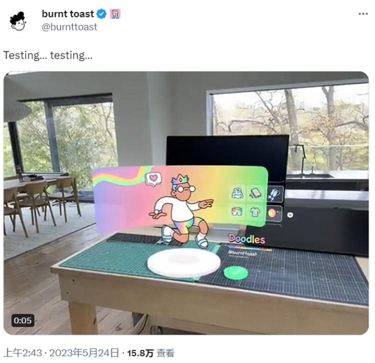 巴比特讯,5 月 24 日,NFT 项目 Doodles 联合创始人 burnt toast 在推特发布 Doodles 的 AR 应用测试视频。