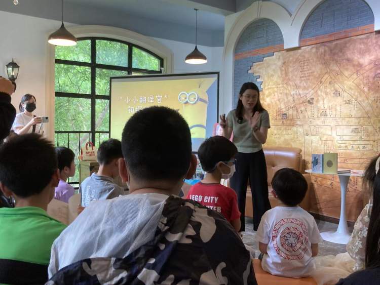 活动中,“小小翻译家”环节正是对于施蛰存先生“西窗”西洋文学翻译的体验活动。小朋友们变身“小翻译”,由资深英语教师余晨曦结合施蛰存的翻译理念,通过“快闪课堂”,领略外语翻译的魅力。
