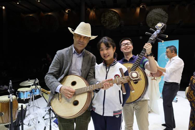 27日晚,演出现场还迎来了一批特殊的观众——来自“老外讲故事”俱乐部的成员们,来自不同国家、陶醉于国乐之美的他们在演出后纷纷上台和演员们亲切互动、温暖交流,深入感受海派民乐与当代美学碰撞出的无限魅力,探索民族音乐背后的文化基因。不同年龄层、不同行业的外国友人们纷纷表达对这一新创国乐作品的喜爱。