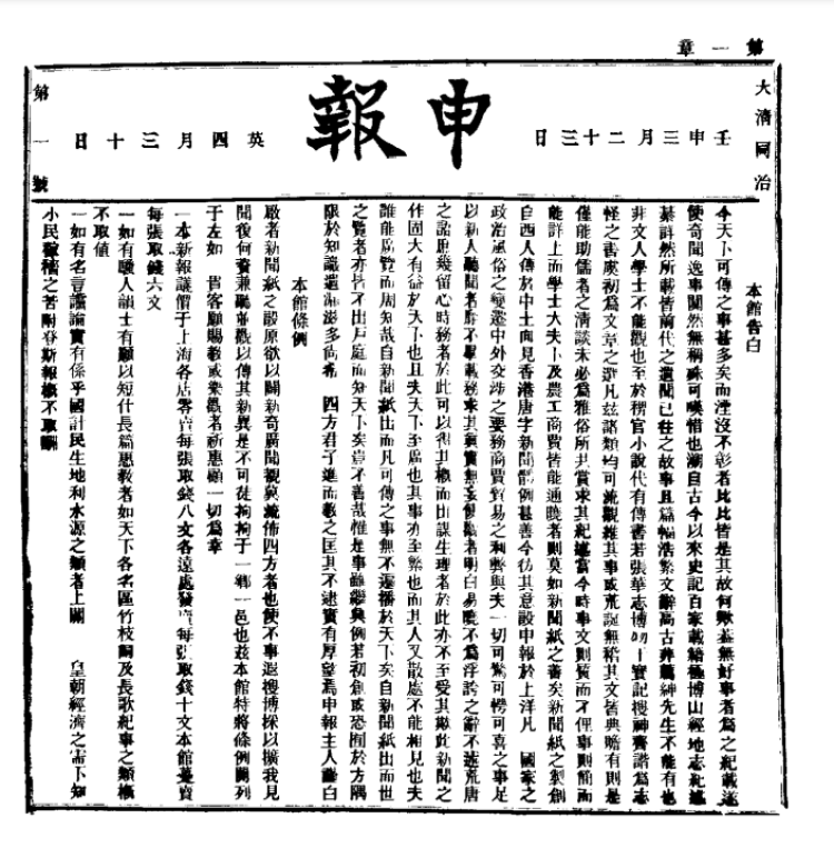 1872年4月30日,《申报》创刊