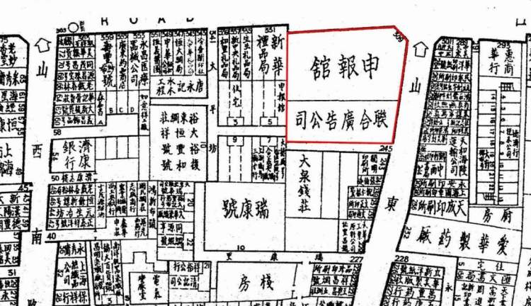 1940年代上海老地图中标注的申报馆位置