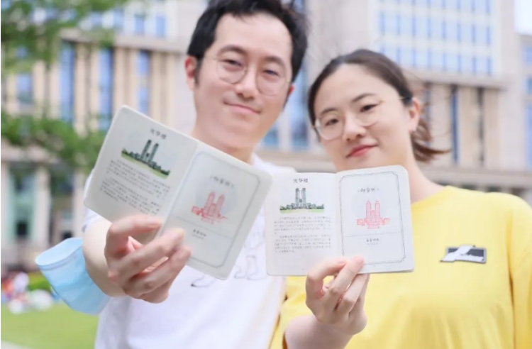 “毕业20周年,同学们从外地过来聚会,非常开心”。在文科图书馆打卡点前,2003届世界经济系的老同学们过来集体打卡“返校护照”。校友们手持红色“返校护照”徜徉各处新老地标之间,重温校园旧时光,感受母校新发展。