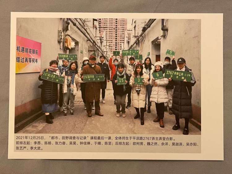 2021年12月25日,“都市、田野调查和记录”课程最后一课,全体师生在平凉路2767弄的主弄堂合影留念