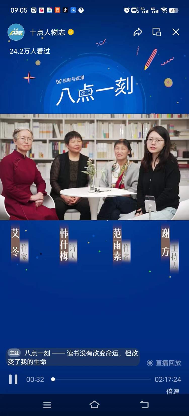 还有一次上《十点人物志》的节目,她在现场现想了两句诗出来:
