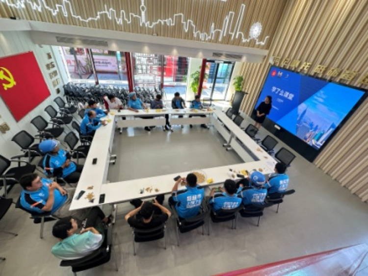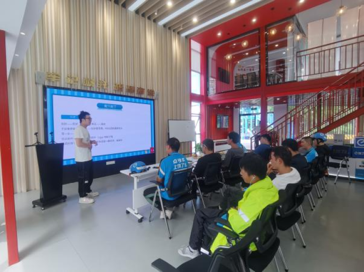 “哎、安、凹、欧” “侬来赛伐” “迭抢忙伐?”……在万有引力新业态新就业群体党群服务中心的沪语课堂上,沪语老师带着小哥们讲起了吴侬软语的上海话。小哥们生活在上海,每天工作和生活中或多或少会碰到语言不通的情况,为方便小哥送餐过程中的沟通交流,让小哥们尽快融入这座城市,推动新就业群体尽快融入社区“大家庭”,党群服务中心精心设置了沪语教学系列课程。从日常打招呼,比如问候、道歉、感谢、寒暄等学起,到学习用沪语说阿拉伯数字、唱数字歌,再到送餐过程中能用到的语言,沪语老师采用“领学+互动”的教学模式,鼓励小哥们积极跟读、开展对话并纠正不准确发音。课堂上,带着全国各地口音的上海话交织在一起,小哥们被自己的“洋泾浜”沪语逗得前仰后合。